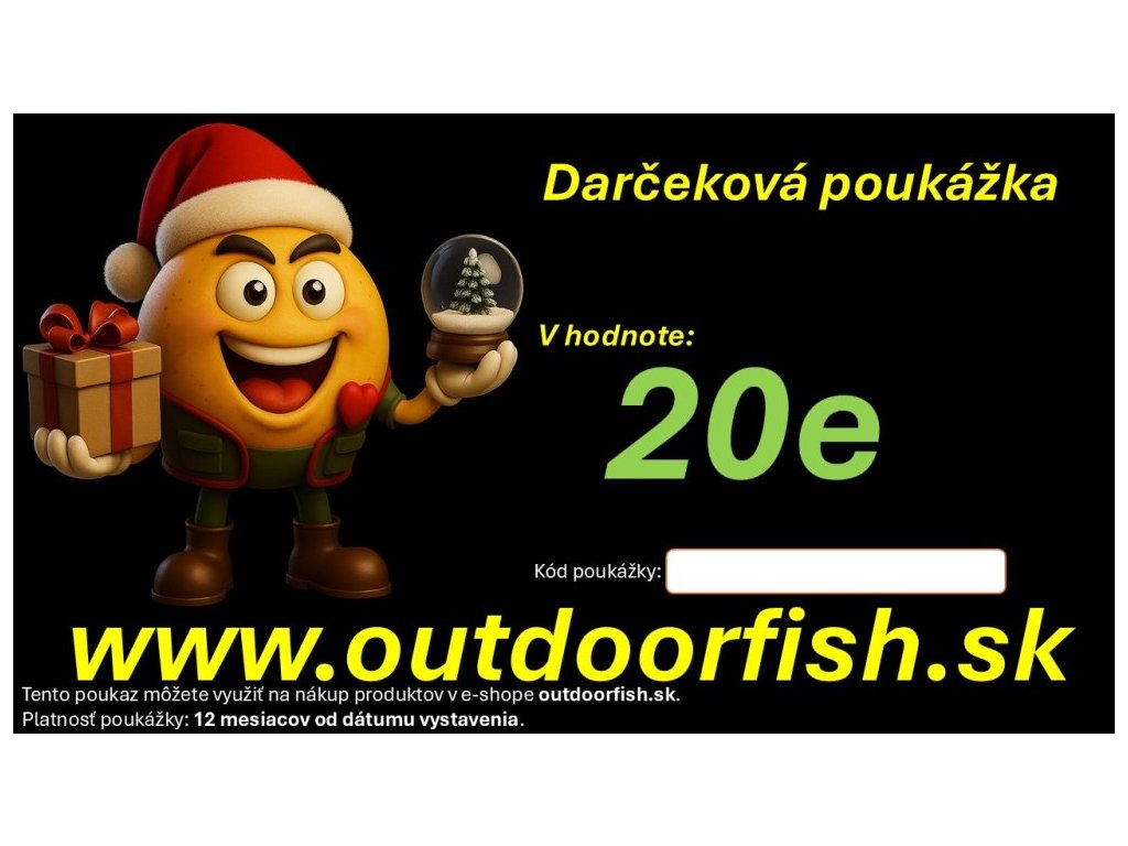 Malý darček, veľká radosť! 🎁 S darčekovou poukážkou OutdoorFish v hodnote 20 € daruješ slobodu výberu a úsmev každému, kto miluje rybolov. 🐟💚