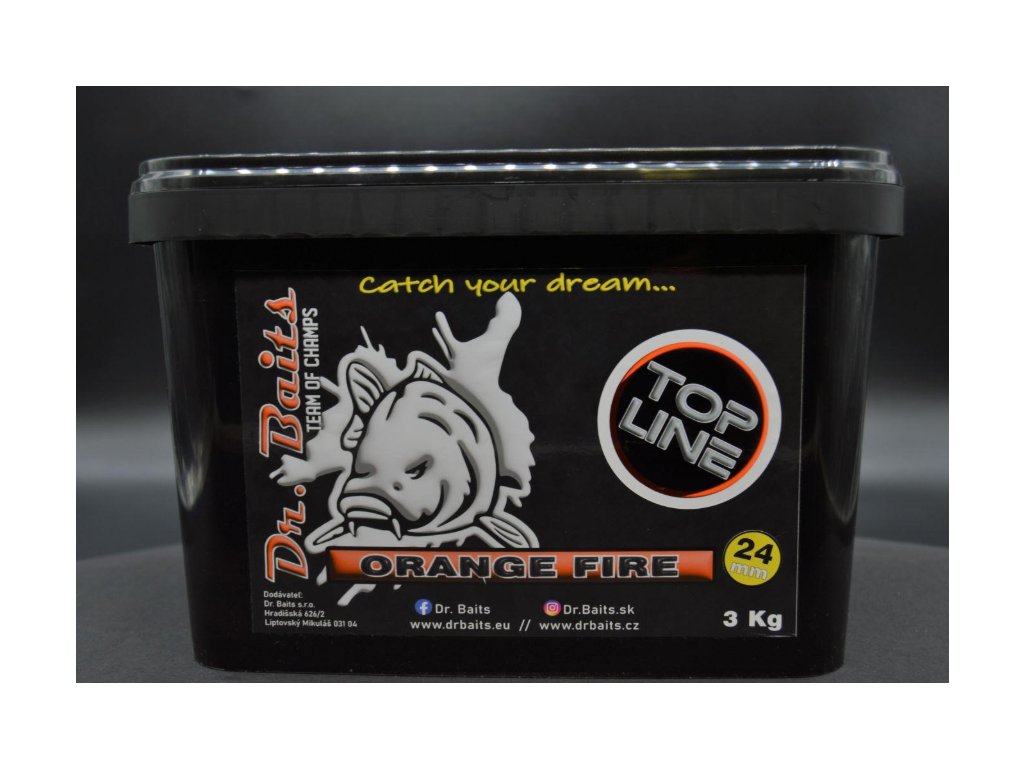 DR. BAITS Orange Fire – korenisté boilies s cesnakom, pečeňou, Robin Redom a chilli. Obsahuje 50 % živočíšnych múčok. Celoročne účinné, ideálne na rýchle rybačky a preteky.