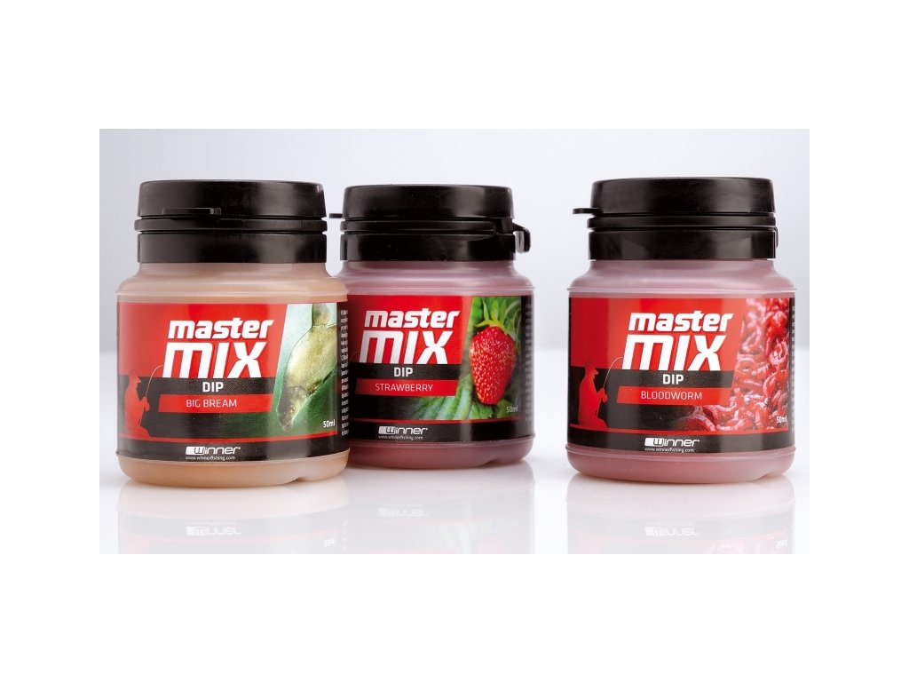 Master Mix Bait Dip, zaručuje zvýšenú intenzitu brania všetkých kaprovitých rýb. Návnada sa dá namáčať pred nahodením, ale najlepšie je ponechať ju v dipe niekoľko hodín. Ryby vábi uvoľňovaná vôňa. Dá sa použiť pre aromatizáciu boilies, kukurice, semien, cestá. Určené výhradne pre ryby!